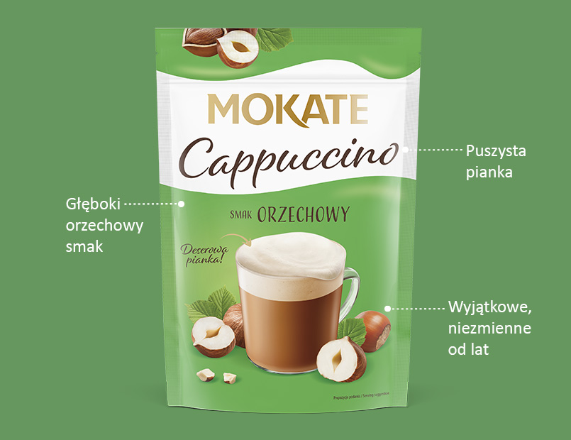 PL CAPPUCCINO O SMAKU ORZECHOWYM ROZPUSZCZALNY NAPÓJ KAWOWY W PROSZKU