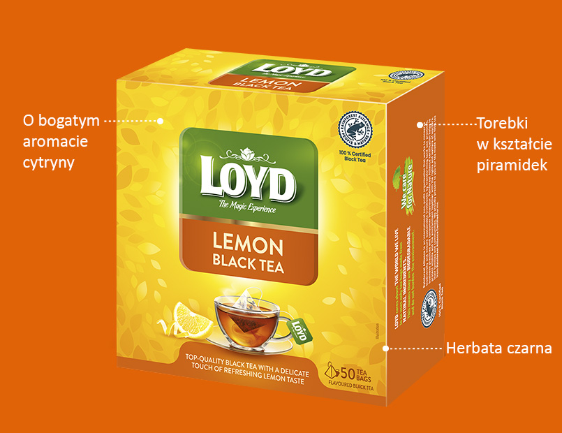Tajemnica wyjątkowego smaku czarnych herbat LOYD kryje się w nieprawdopodobnie rygorystycznej selekcji herbacianego surowca. Tylko niewielki procent czarnych listków ma szansę trafić do herbacianego raju, czyli do słonecznych opakowań herbaty LOYD, które zawierają 20 lub 50 torebek. Jej wyjątkowy smak to bezsprzecznie zasługa specjalnie zaprojektowanych trójwymiarowych torebek w kształcie piramidek. Wykonano je z jedwabistego, absolutnie bezsmakowego naturalnego materiału. Dzięki temu podczas zaparzania uwalnia się wyjątkowy bukiet smaków i aromatów, którym możesz cieszyć się w każdej filiżance herbaty.