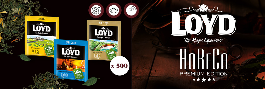 Linia LOYD HoReCa to oferta herbat wysokiej jakości przeznaczone dla gastronomii. Specjalnie wyselekcjonowane herbaty oraz smaki gwarantują zadowolenie Klienta. Każda torebka tej wyjątkowej herbaty zapakowana jest w osobną kopertę z metalizowanej folii o wysokiej barierowości, co bezpośrednio przekłada się na utrzymanie świeżości produktu.
