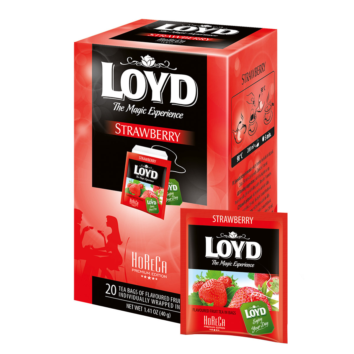 The LOYD HORECA range offers high-quality teas designed specifically for the catering and hospitality sectors. Specially selected teas and flavours guarantee satisfaction for even the most demanding customer. Each tea bag is packed in an envelope made of high-barrier metallised foil, which directly helps to maintain the product’s freshness. Additionally, the carton features a dedicated perforation, allowing for convenient removal of individual tea bags.