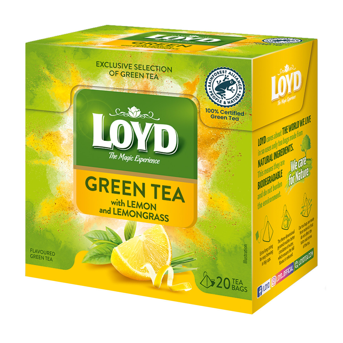 Savour a carefully selected blend of long green tea leaves with a hint of lemon and lemongrass, creating a pale yellow infusion with a distinctly refreshing flavour. Let yourself be enchanted, because LOYD is a tea with a touch of magic.