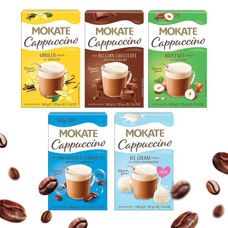 This pack of 5 boxes of cappuccino in classic flavours is the perfect choice for lovers of classic coffee drinks. Quick and easy to prepare, they offer a creamy texture and a pleasant taste – ideal for everyday enjoyment, whether at home or at work. You can find the nutritional information and ingredients on the individual product pages.