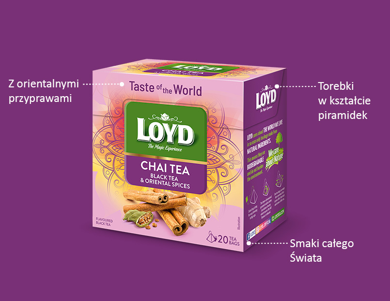 PL CHAI TEA - HERBATA CZARNA AROMATYZOWANA Z CYNAMONEM, IMBIREM I KARDAMONEM W TOREBKACH DO ZAPARZANIA.