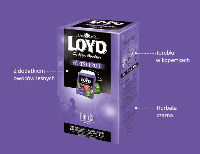 Linia LOYD HORECA to oferta herbat wysokiej jakości dedykowanych gastronomii oraz hotelarstwu. Specjalnie wyselekcjonowane herbaty oraz smaki gwarantują zadowolenie najbardziej wymagającego Klienta. Każda torebka herbaty zapakowana jest w kopertę z metalizowanej folii o wysokiej barierowości, co bezpośrednio przekłada się na utrzymanie świeżości produktu. Dodatkowo kartonik z dedykowaną perforacją pozwala na wygodne pobieranie pojedynczej torebeczki.