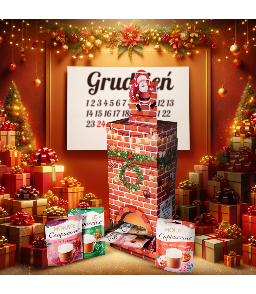 Rozpocznij magiczne odliczanie do świąt z naszym kalendarzem adwentowym Mokate, z którym z każdej saszetki przygotujesz cappuccino dla 2 osób!