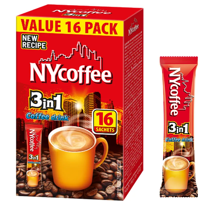 Szybka Przyjemność Bez Kompromisów: Zanurz się w intensywnym smaku kawy bez konieczności dodatkowego mieszania składników. NYCoffe 3w1 to szybki sposób na cieszenie się ulubionym napojem.