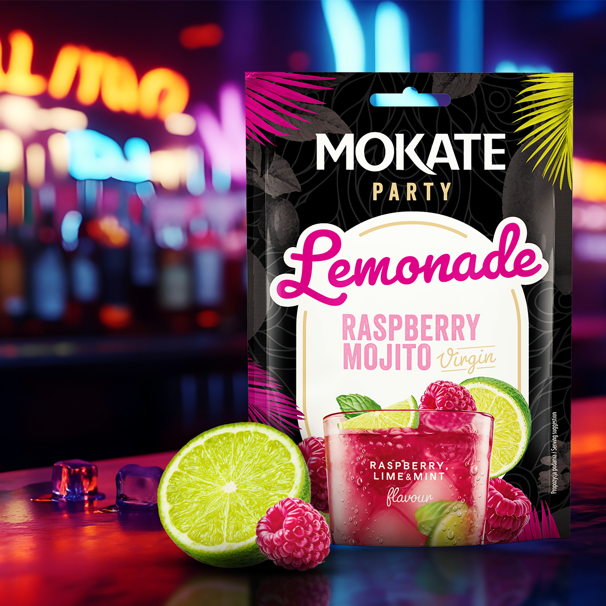 Mokate PARTY to Twój sposób na niezapomnianą letnią imprezę. Zabawa na plaży? Relaks ze znajomymi na świeżym powietrzu? A może celebracja w upalne dni? Ta lemoniada zapewni więcej niż orzeźwienie! Odkryj wyjątkowe smaki inspirowane Twoimi ulubionymi drinkami, które przeniosą Cię myślami na rajską plażę pod palmy.LEMONADE RASPBERRY MOHITO to kubańskie rytmy splecione z orzeźwieniem soczystych malin – połączenie, które stworzy idealnego drinka – oczywiście w wersji 0%!