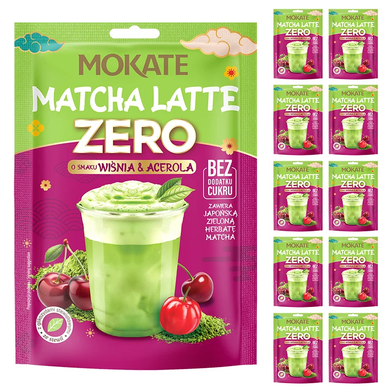 Zestaw Matcha Zero Zielona Herbata w Proszku BEZ CUKRU WŚNIA ACEROLA MOKATE 20g x 10 Sztuk