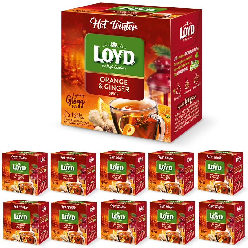 Zestaw 10 sztuk Herbatka owocowo - ziołowa Loyd Hot Winter o smaku pomarańczy i imbiru 15 torebek