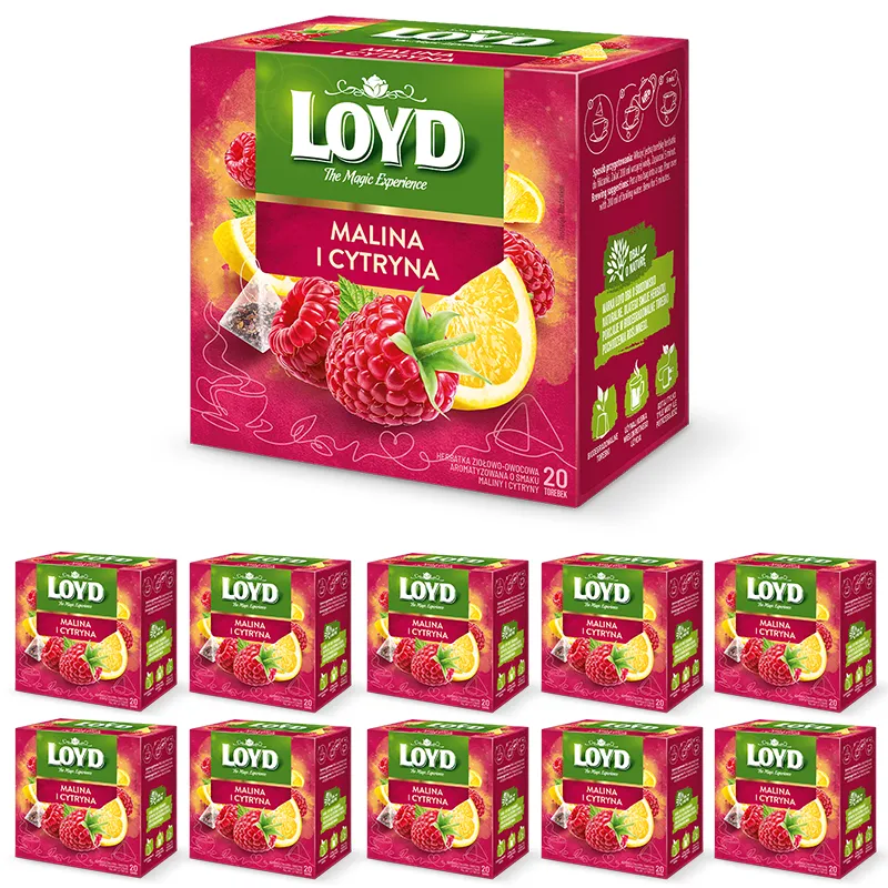 Zestaw Herbata Owocowa Malina i Cytryna 20 torebek 10szt