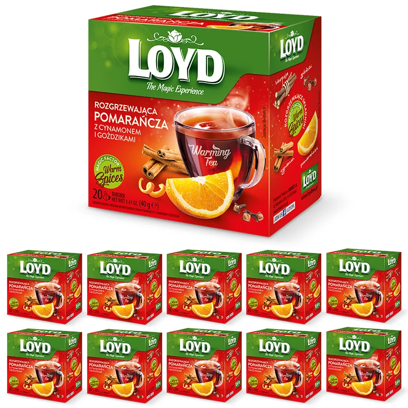 Ten tercet to idealne towarzystwo na chłodne jesienno-zimowe dni. Herbatka od Loyd to dokładnie skomponowana mieszanka herbaty ziołowej, pysznych owoców i aromatycznych przypraw. Produkowany ze skrupulatnie dobranych składników owocowy napar o smaku pomarańczy, cynamonu i goździków urzeka głębokim, wyraźnym zapachem oraz zachwyca intensywnym, słodko-korzennym smakiem.